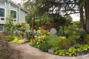 One project often leads to another. In this instance, the construction of a workshop meant re-grading and re-thinking the back garden of a lovely home in Sammamish, WA, a popular residential neighborhoood in the Greater Seattle area. In its favor this garden was a good size, had some interesting elevation changes and several mature trees…